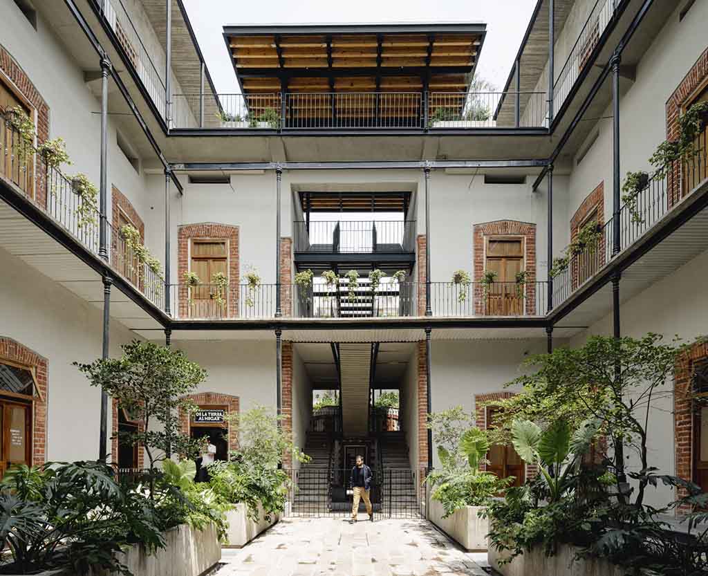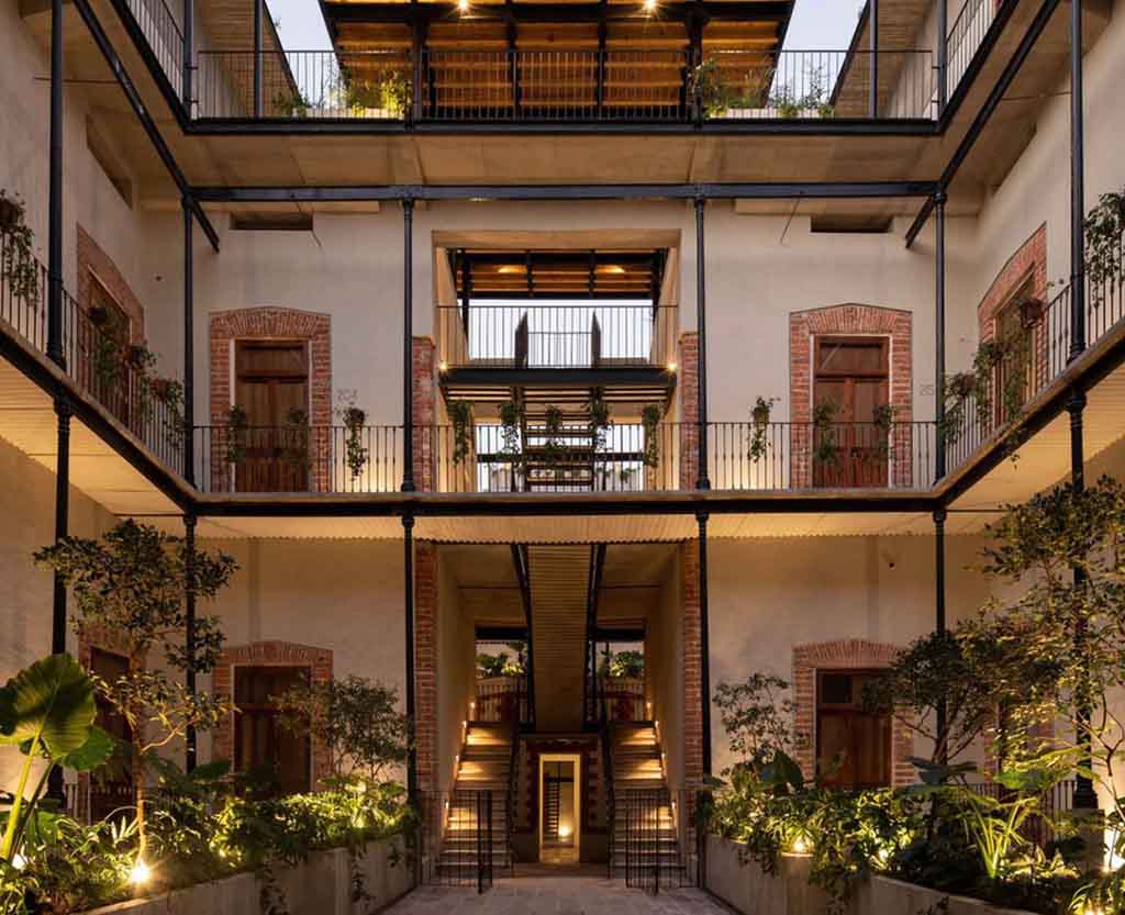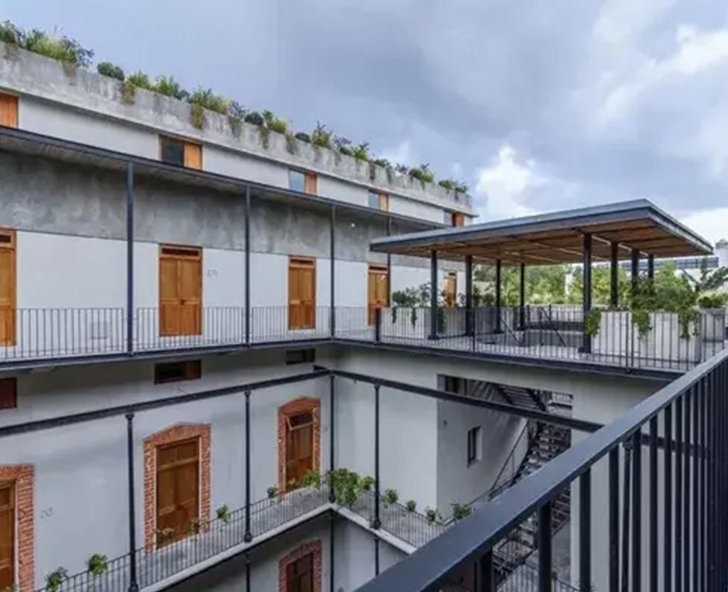 Proyecto en avenida Bucareli que combina locales comerciales a nivel calle con departamentos residenciales en pisos superiores, integrándose a la vida urbana del barrio.